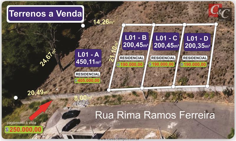 Terreno Plano com toda infra-estrutura  (agua, esgoto, pavimentação e iluminação pública)